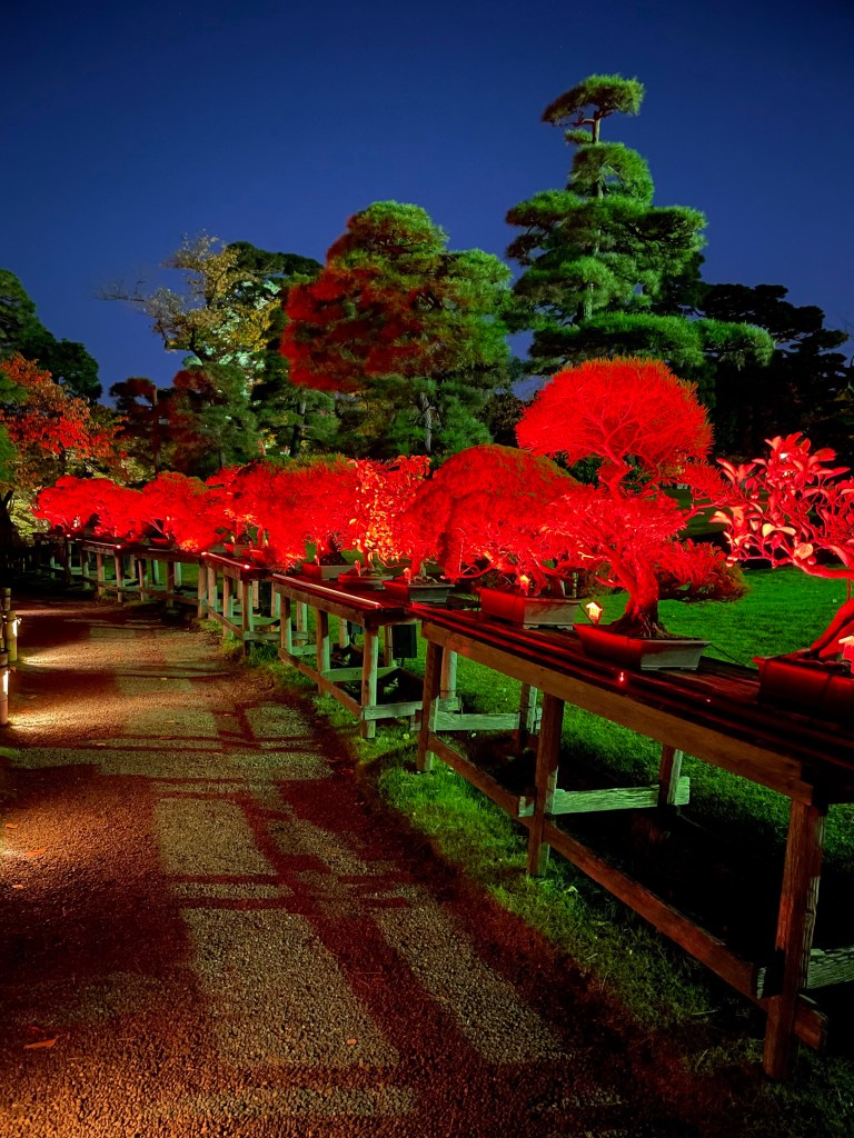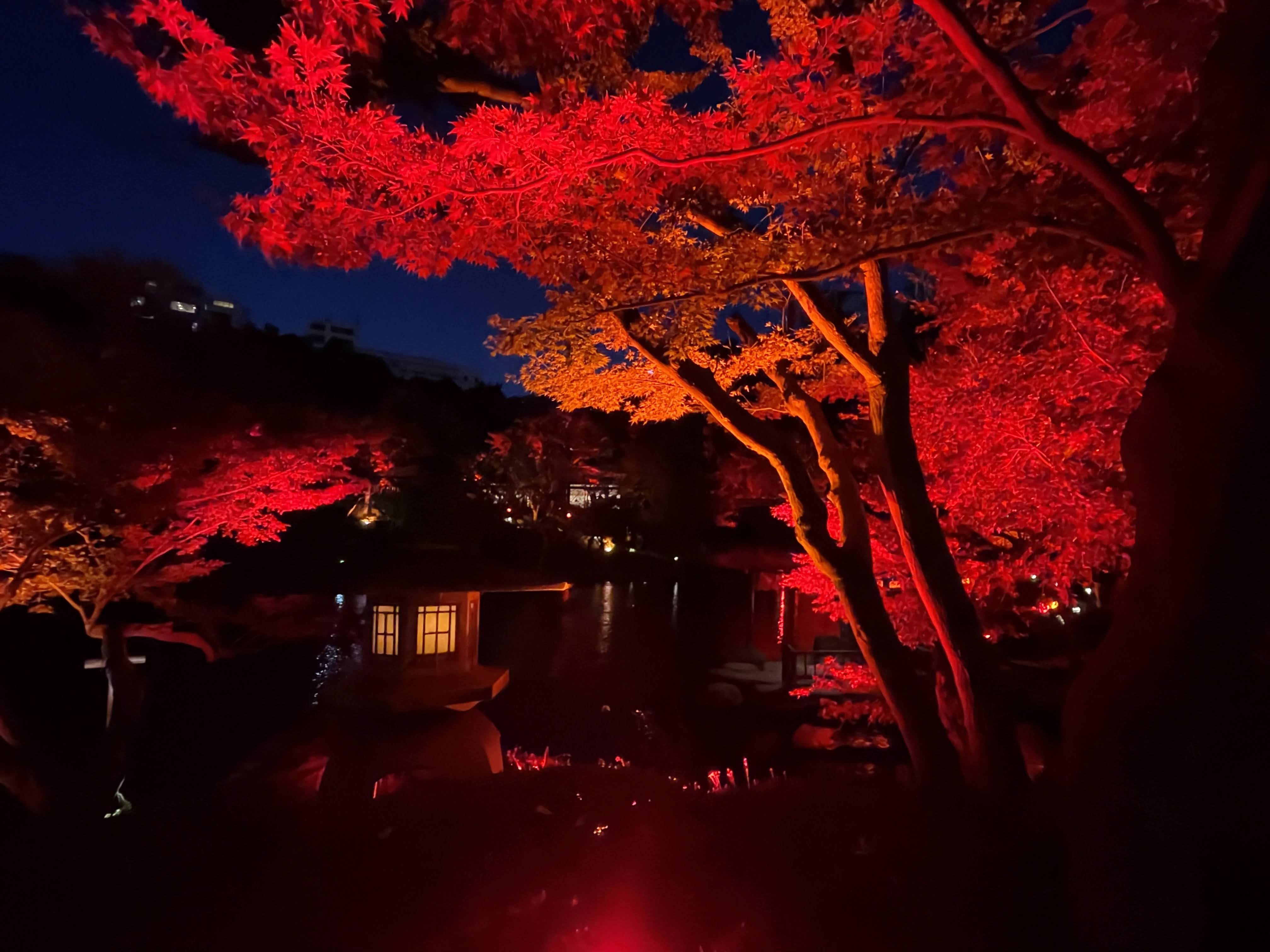 Un altro evento in occasione del foliage autunnale lo si può ammirare al Tokyo red garden, una bellissima location in cui vengono persino organizzati matrimoni. Qui al tramonto tutto s’illumina di rosso. Le luci si riflettono sul piccolo lago al centro del giardino ed anche qui l’atmosfera assume un’aria romantica. Volendo è possibile prendere qualcosa da bere in uno dei bar circostanti. L’ingresso ad Happo en è completamente gratuito; preparatevi però alla gran quantità di gente presente a fare fotografie e video. In alcuni momenti è quasi complicato persino camminare. Comunque ne vale la pena; appena entrati al giardino si possono ammirare una serie di bonsai esposti uno in fila all’altro. Gli aceri colorati di rosso con l’aggiunta delle luci rosse sparse per tutto il giardino, rende l’atmsfera davvero magica.