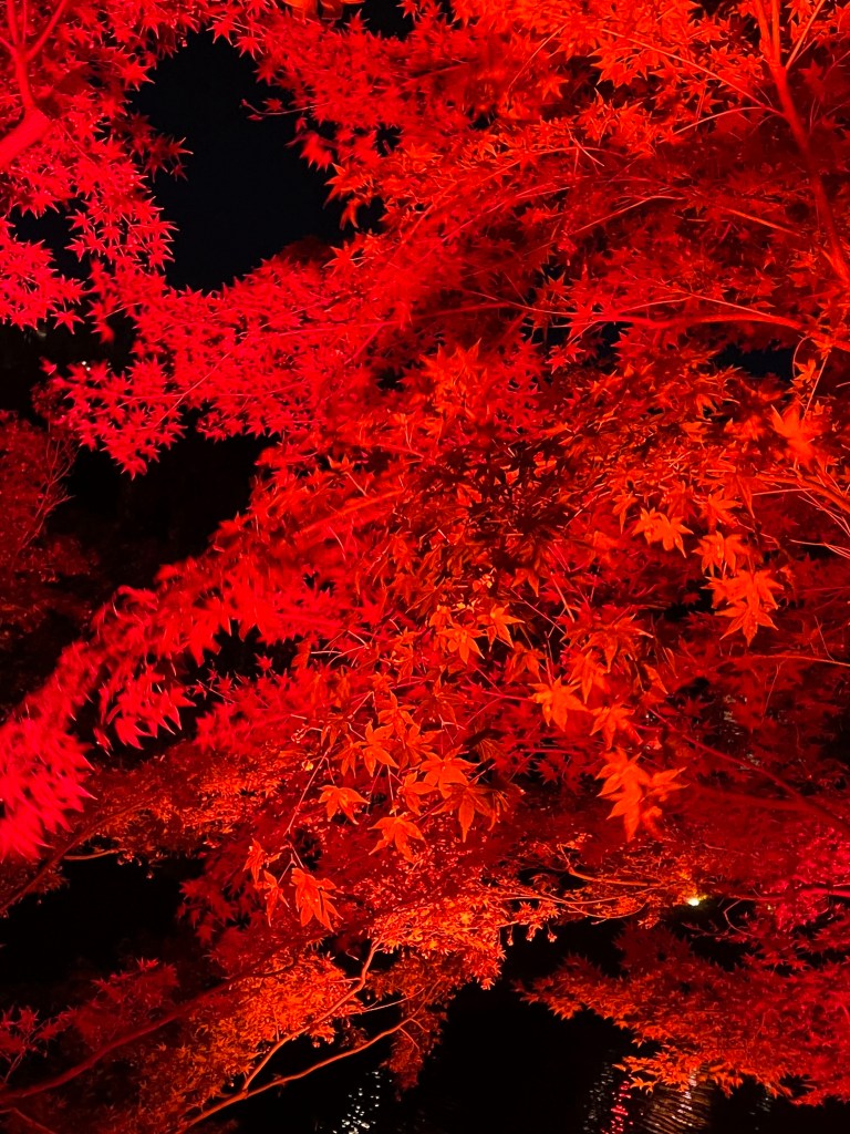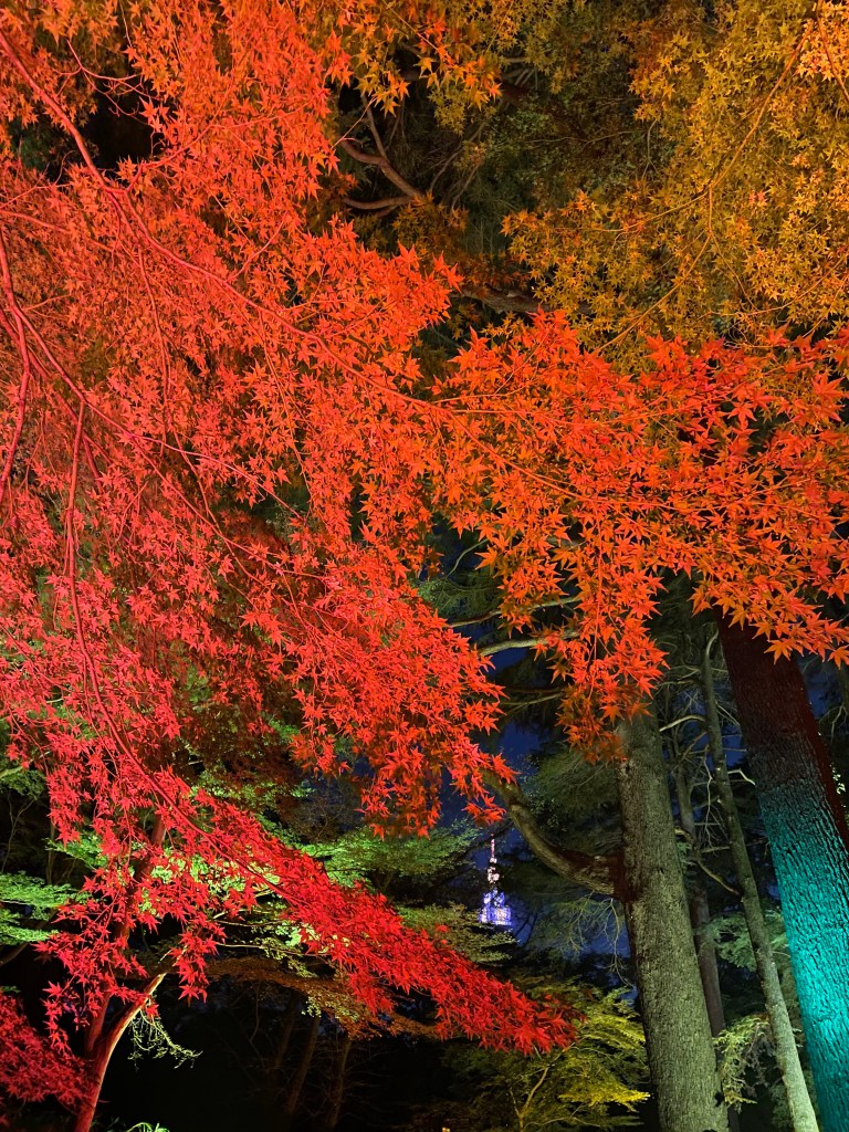 Per visitare il parco è necessario pagare un biglietto di circa 2000 yen; all’ingresso si può prendere a noleggio una lanterna per avere un pò di luce durante la passeggiata. Tutto il parco è illuminato con giochi di luci accompagnati da musica che rende l’atmosfera ancora più rilassante e romantica. Camioncini di street food sono presenti nel parco per poter acquistare bevande calde o mangiare qualcosa. Il percorso illuminato si estende per una piccola zona del parco fino ad arrivare al laghetto dove le luci sono proiettate anche sull’acqua. Non so descrivervi l’emozione provata mentre passeggiavo sotto i bellissimi alberi vestiti d’autunno.