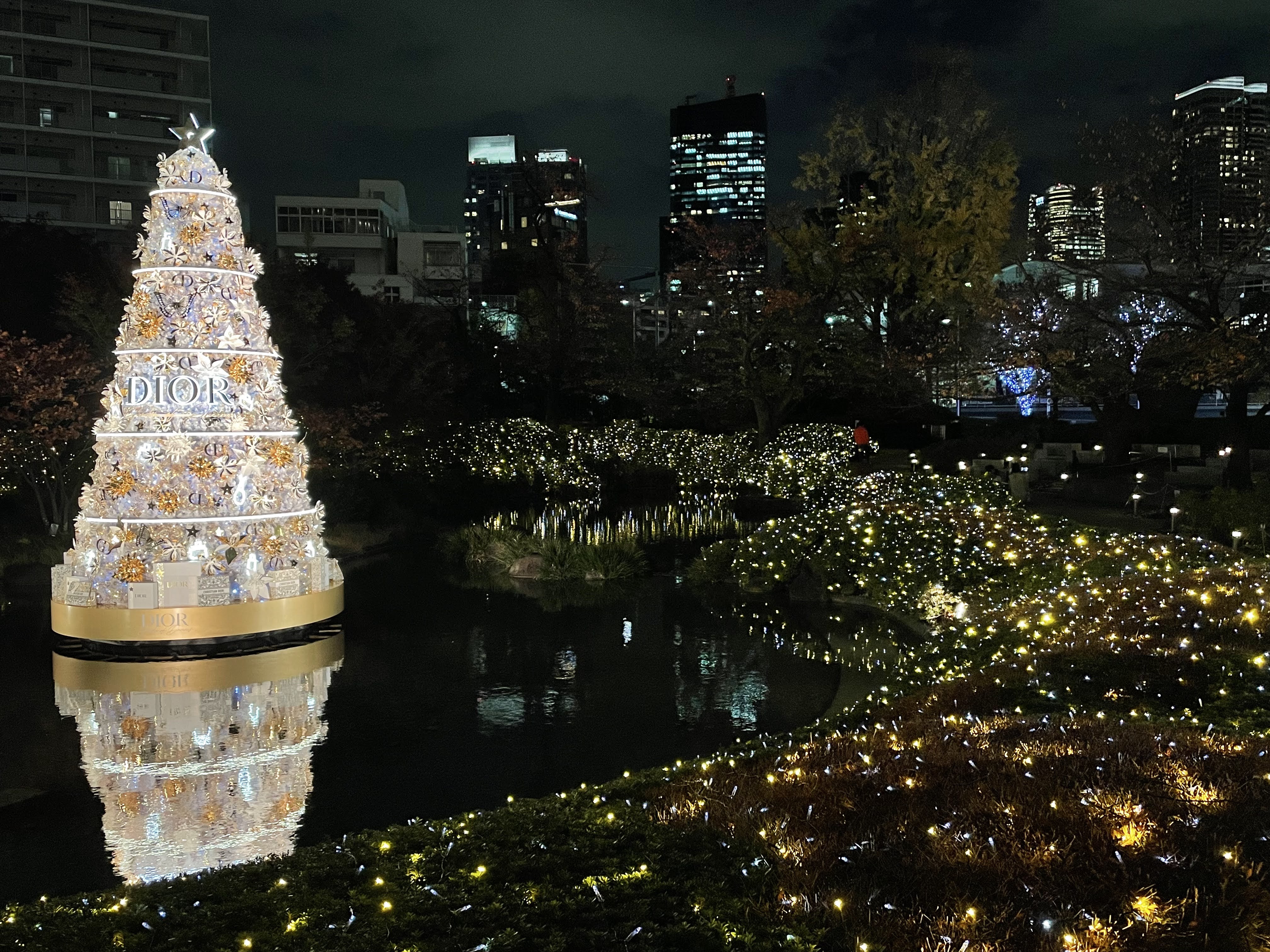 Una volta passata la folla di Keyakizaka Street, recatevi a veder il bellissimo Mohri Garden. Quest’anno addobbato da Dior, tutto il giardino si veste di oro e bianco; un albero immenso è posizionato in mezzo al lago artificiale e le luci dorate si riflettono sull’acqua creando un atmosfera davvero magica.