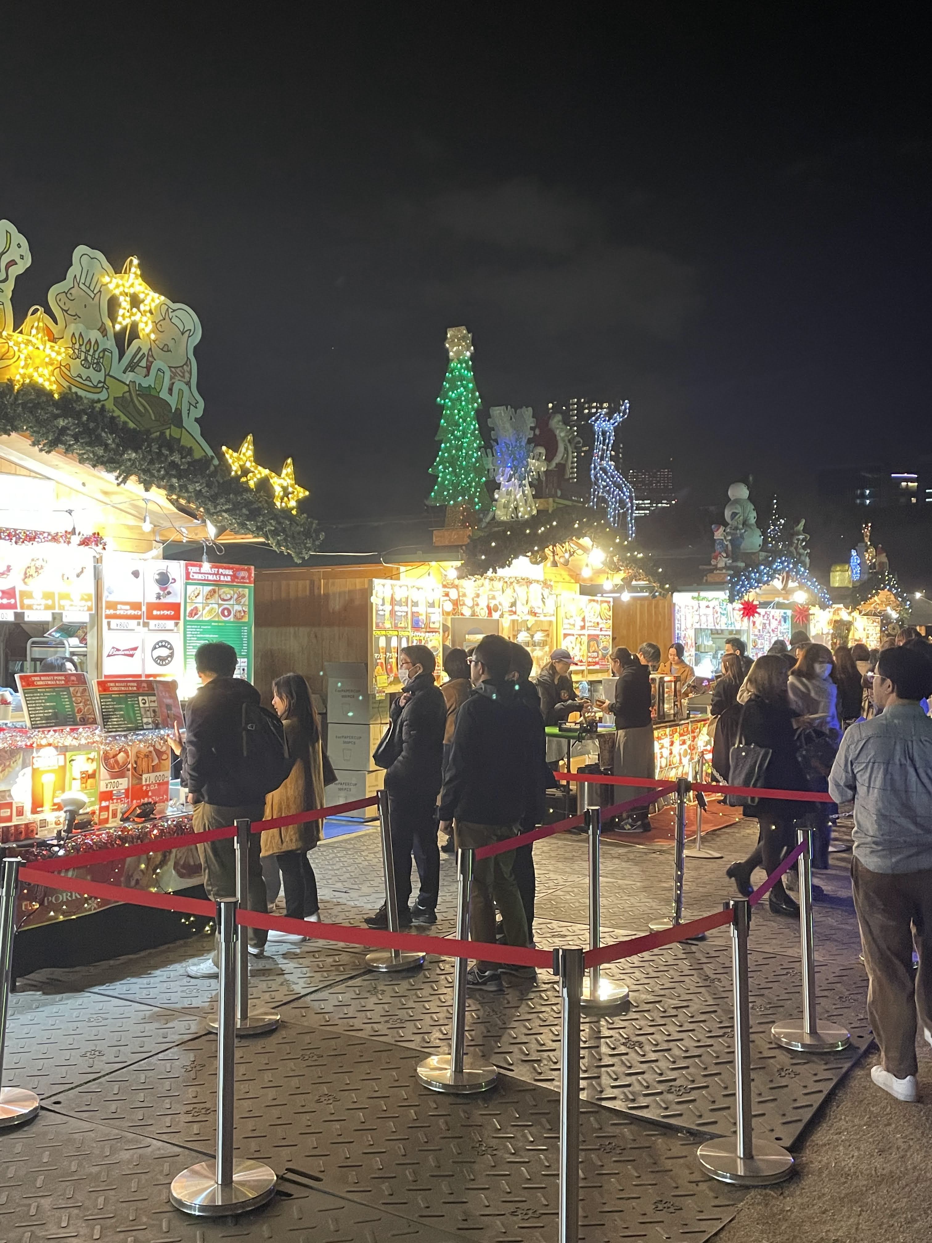 A Shinanomachi si trova il più grande mercatino di Natale di Tokyo; per entrare qui bisogna prenotare un biglietto on line che costa 1000 yen e con l’acquisto del biglietto viene data in regalo una tazza con lo stemma del mercatino. Lo spazio qui è davvero molto grande e ci sono bancarelle di ogni genere anche se alcune cose arrivano dall’Europa e, di conseguenza, sono molto care. La maggior parte delle bancarelle – comunque – vendono street food. Si trova davvero di tutto, dai wurstel ai pretzel, dalla birra alla cioccolata calda…dolci, churros, vin caldo...insomma, le classiche cose da Oktober Fest. No davvero…sembrava di stare all’Oktober Fest. Il Tokyo Christmas Market rimane aperto fino alle ore 22.