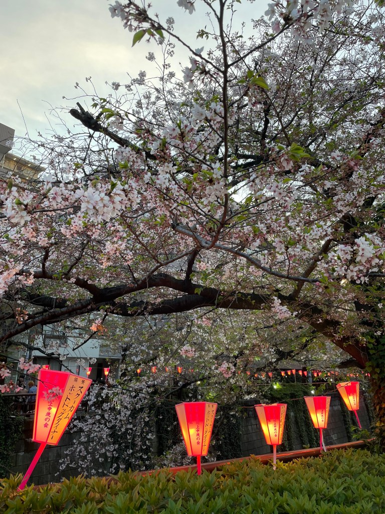Naka Meguro è forse la zona più famosa di Tokyo per vedere l’hanami. I ciliegi qui seguono il corso del fiume Meguro e lungo tutto il percorso i locali preparano bancarelle con street food e drinks. L’atmosfera che si respira qui è di festa . Col calar della sera, le lanterne che corrono lungo tutta la strada vengono illuminate, creando un’atmosfera romantica. Uno dei posti panoramici migliori per vedere i ciliegi dall’alto è la terrazza della starbucks roastery ma vi consiglio di andare con largo anticipo perchè durante la fioritura è presa d’assalto e lo staff della caffetteria organizza gli ingressi a tempo.