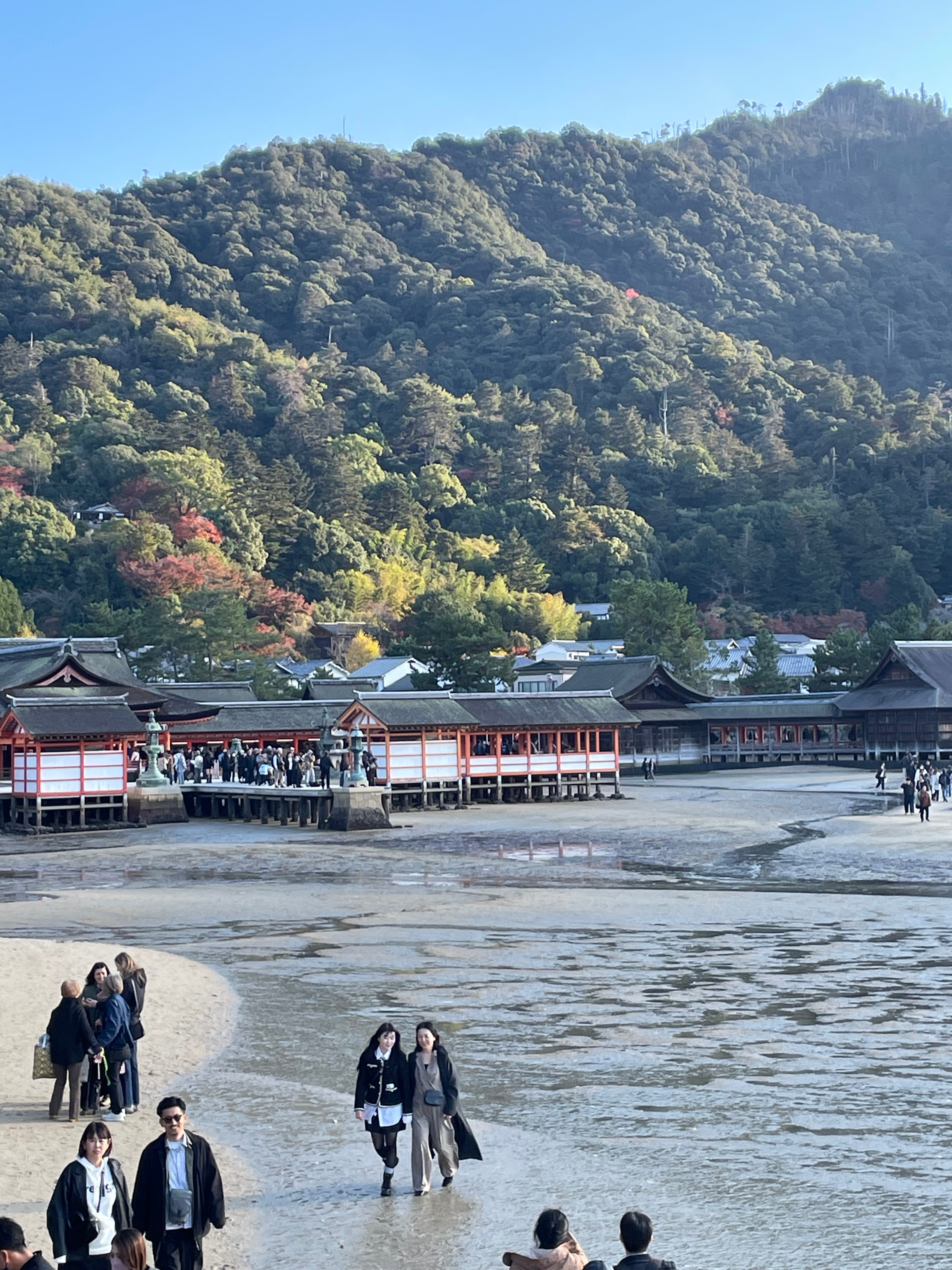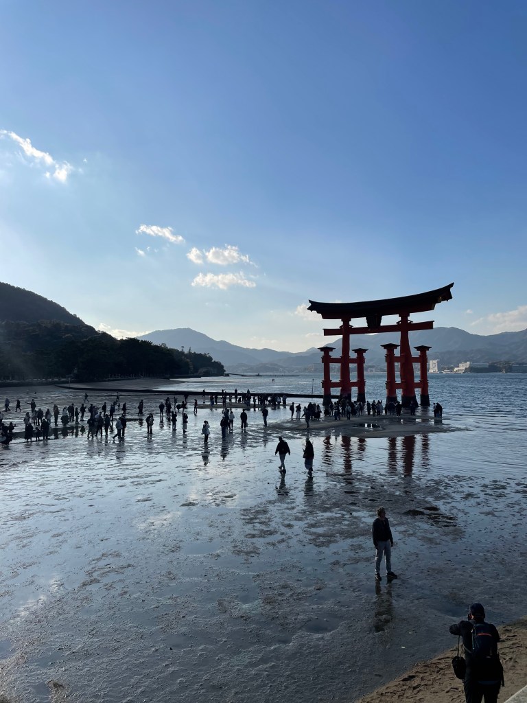 Solitamente il santuario Itsukushima ed l’Ootori sono sommersi dall’acqua alla mattina; nel pomeriggio la marea comincia a ritirarsi lasciando la spiaggia completamente scoperta. Se possibile, pianificate la visita in modo da riuscire a vedere il santuario con entrambe le maree.